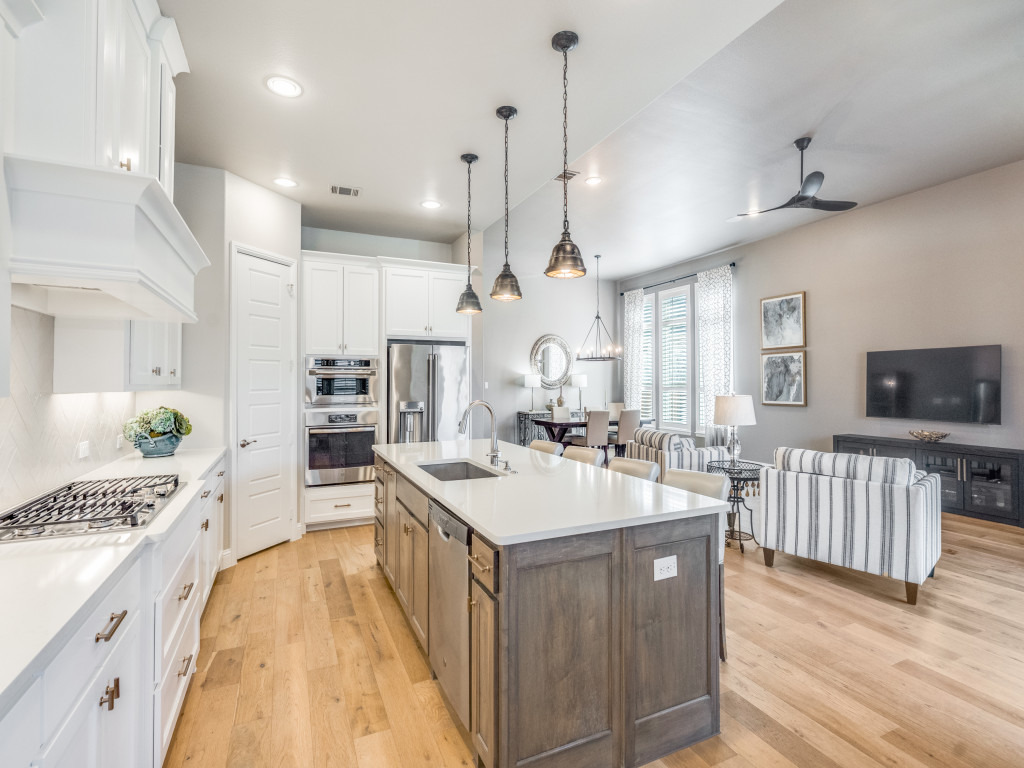 The chef’s kitchen is as functional as it is beautiful, featuring a large island with bar seating, walk-in pantry, a breakfast nook and abundant counter and storage space.