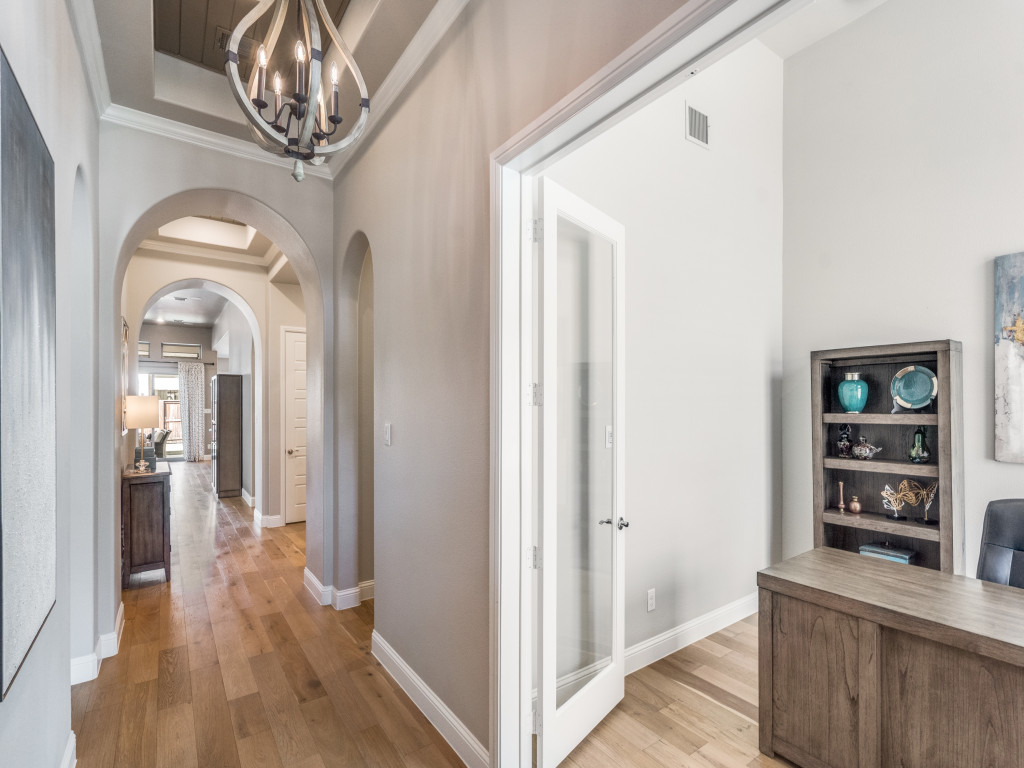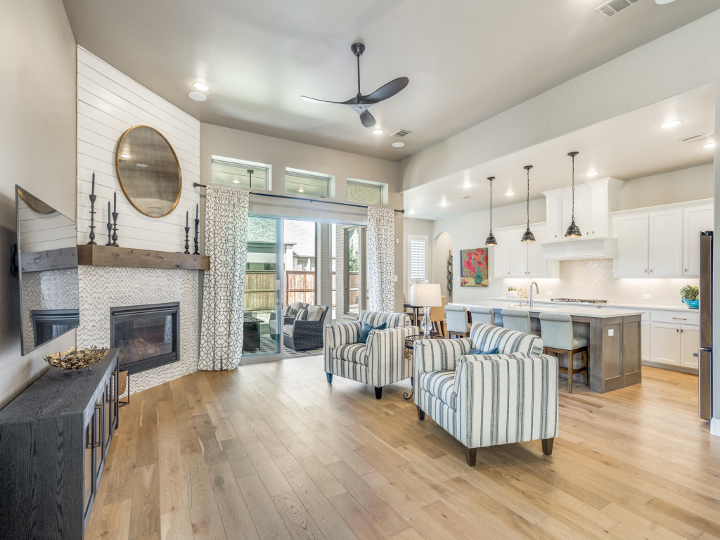 Additional touches include Plantation shutters throughout, a tandem three-car garage with epoxy flooring, and a convenient mudroom.