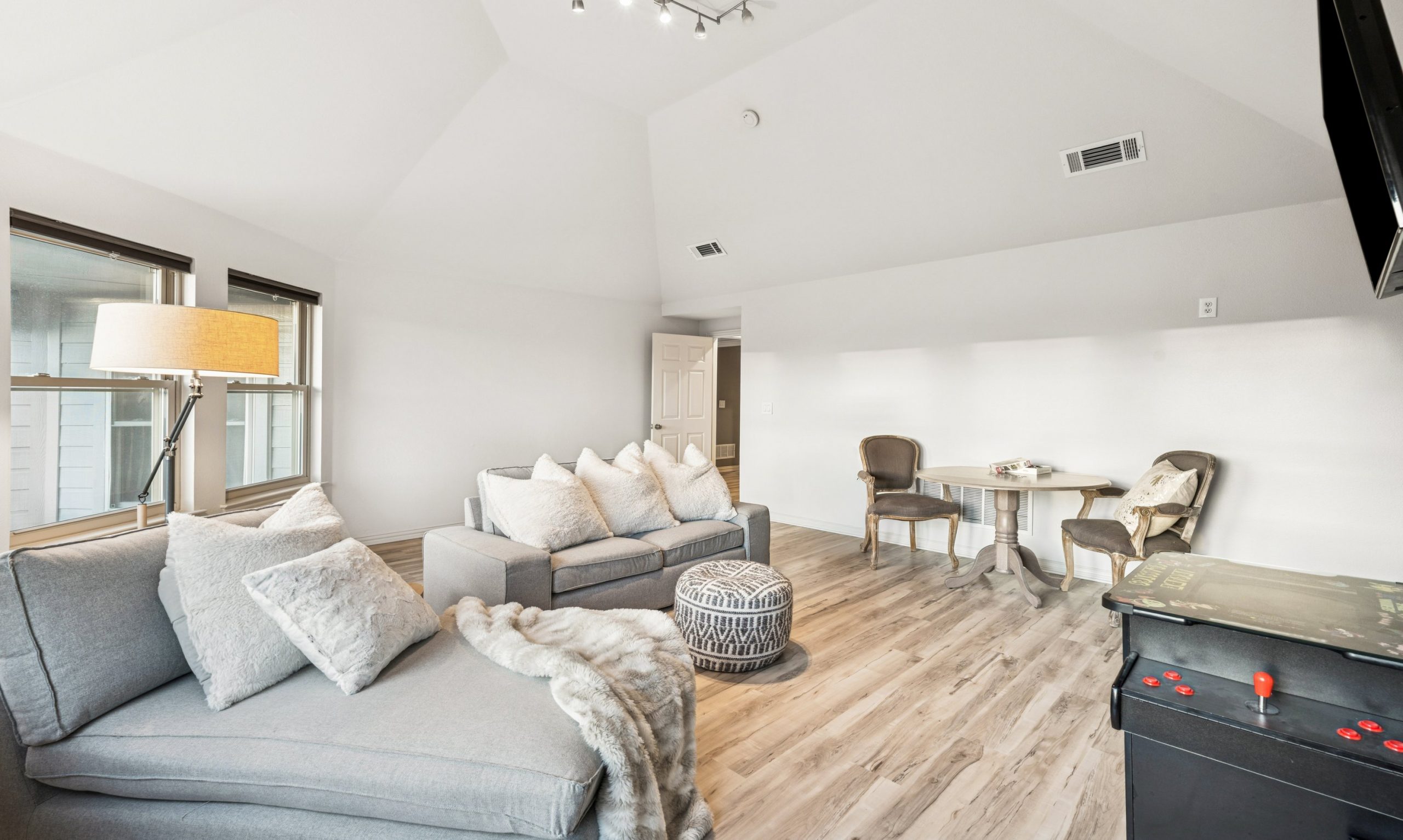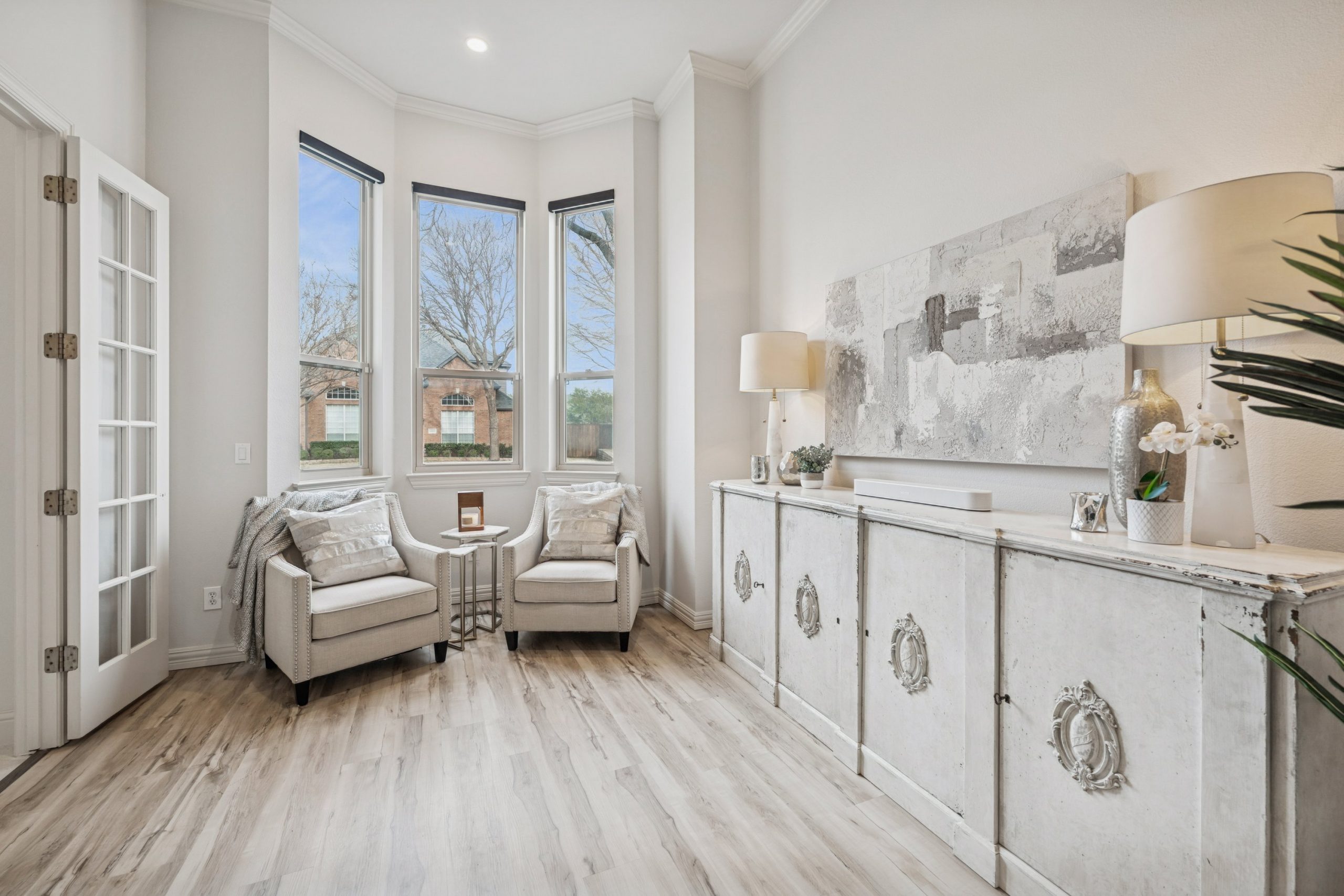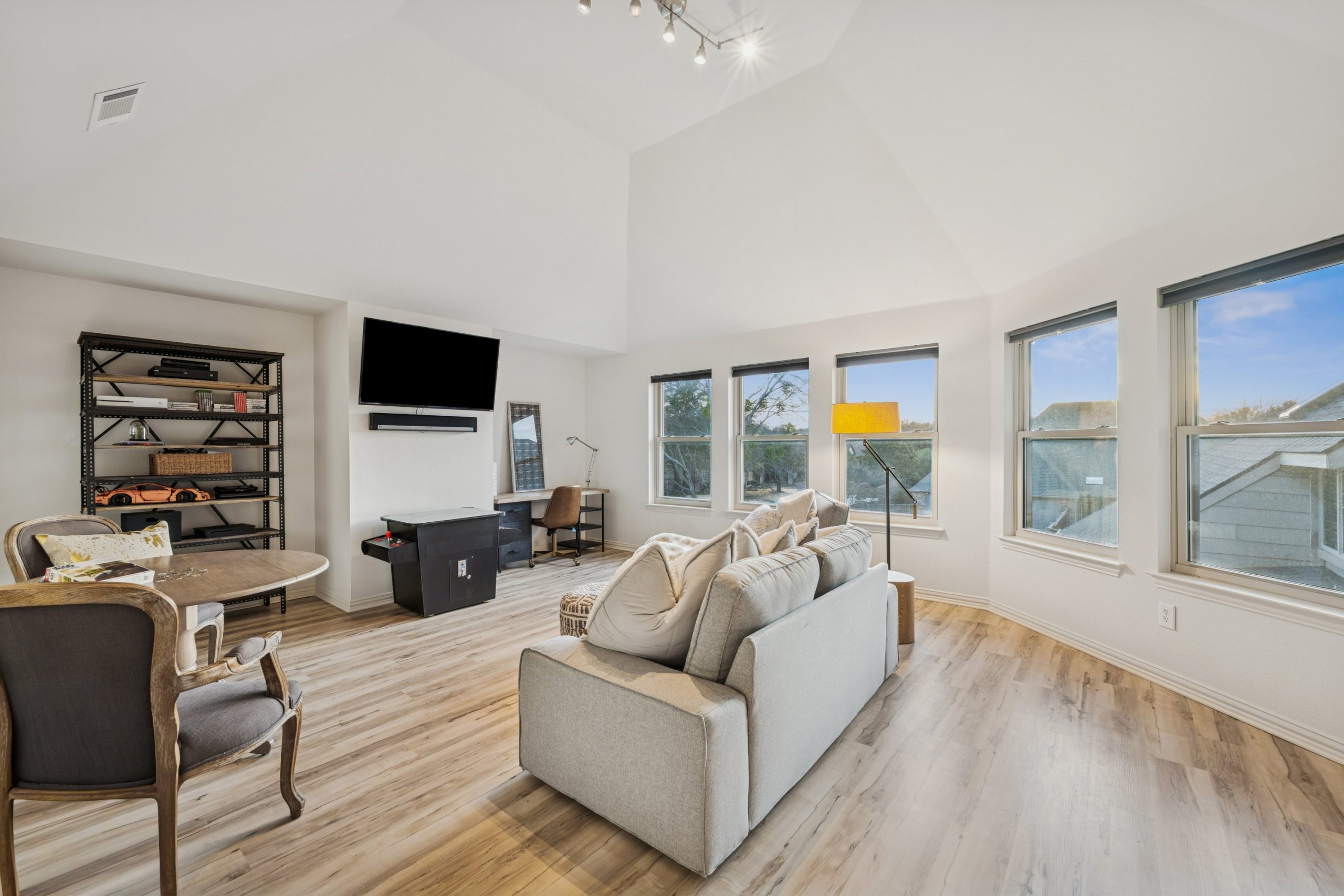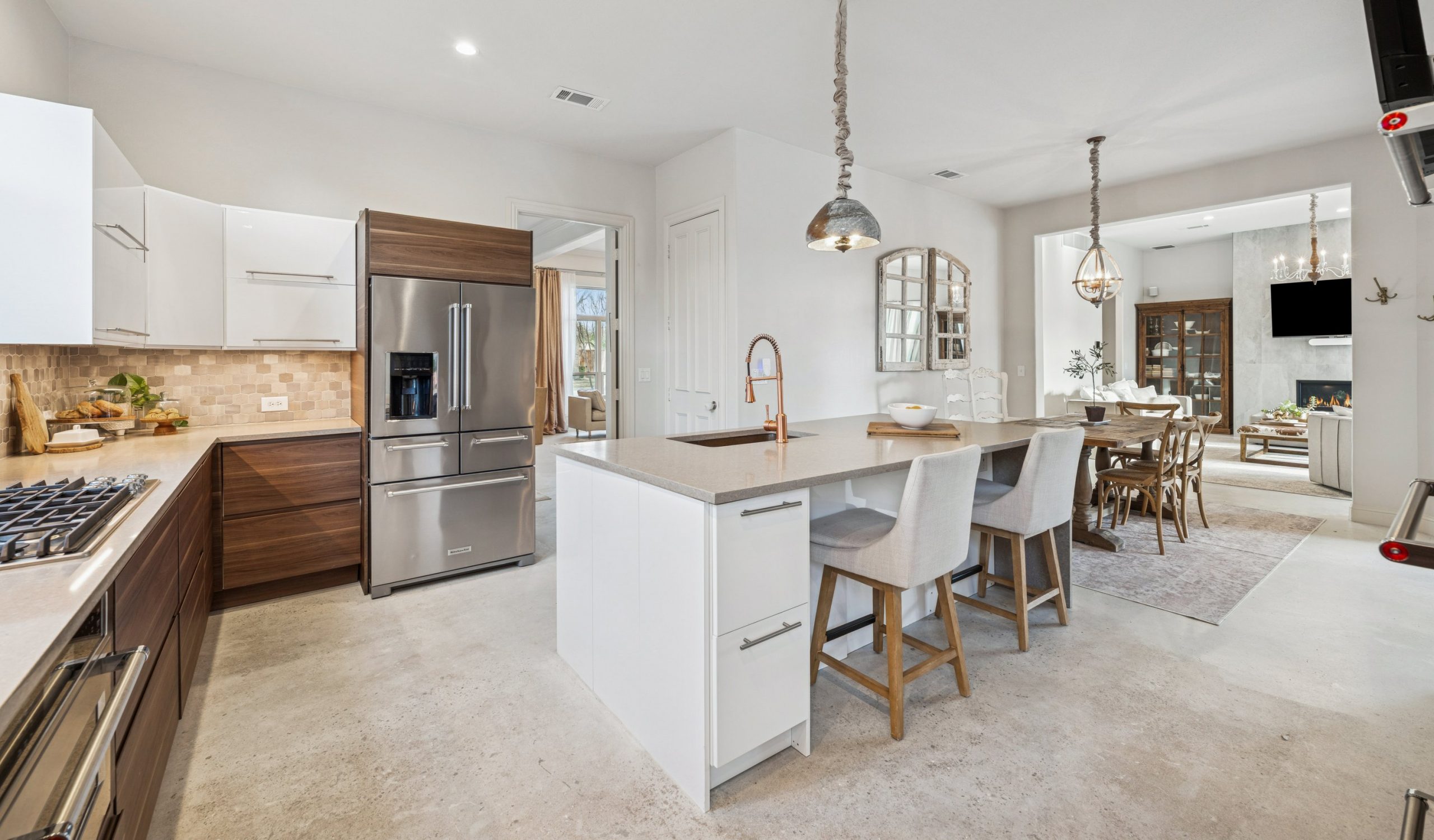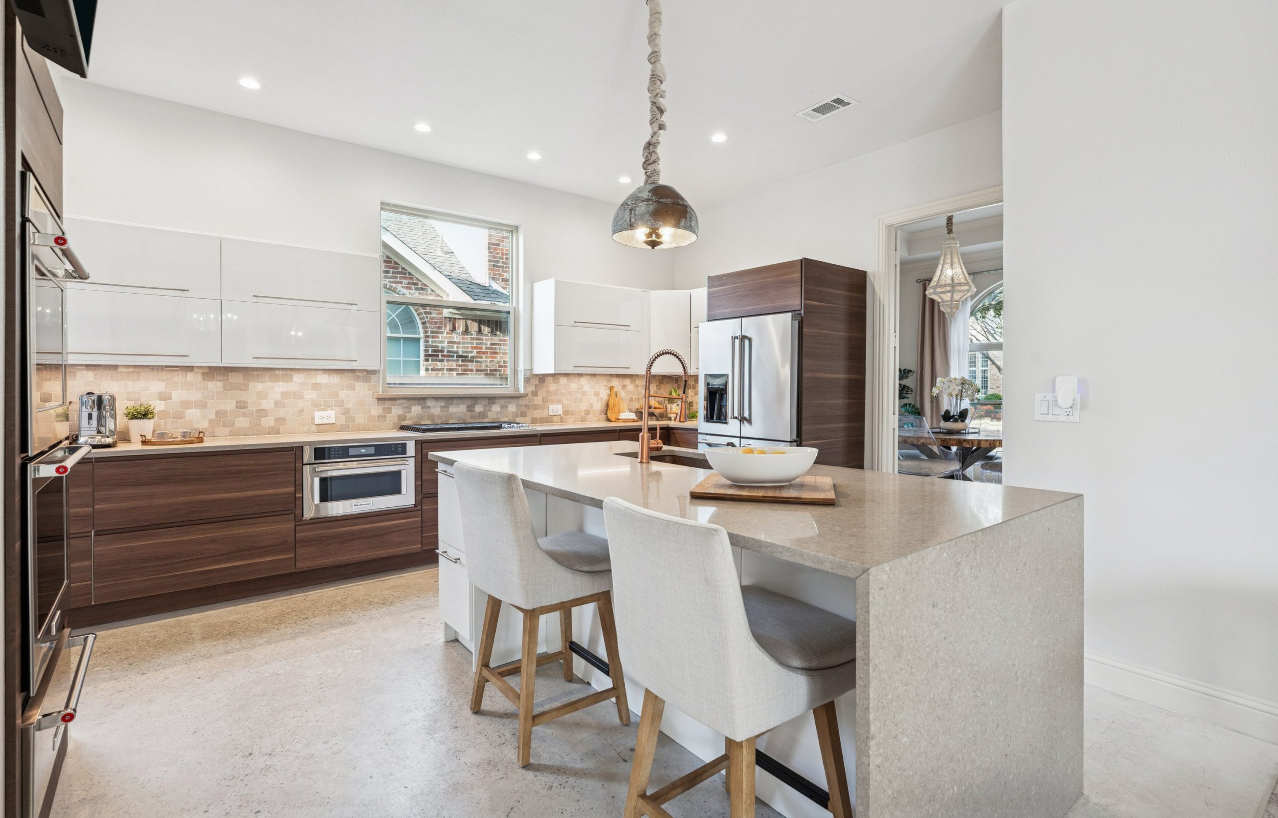 Step inside to light-filled spaces and a thoughtfully reimagined interior where modern sophistication meets timeless elegance. Stained concrete floors downstairs create a sleek architectural statement, while upstairs luxury plank flooring adds warmth and texture. Designer lighting throughout — including Hue smart lighting with remote capability — allows you to curate the ambiance in every space.